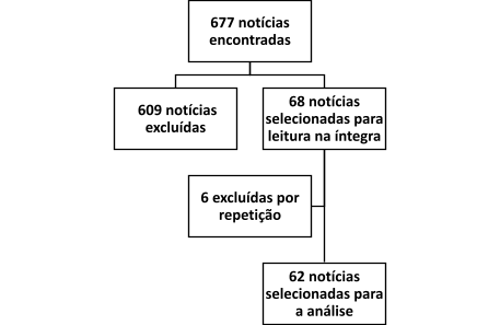 Figura 1 - Fluxograma com os resultados do processo de seleção de notícias